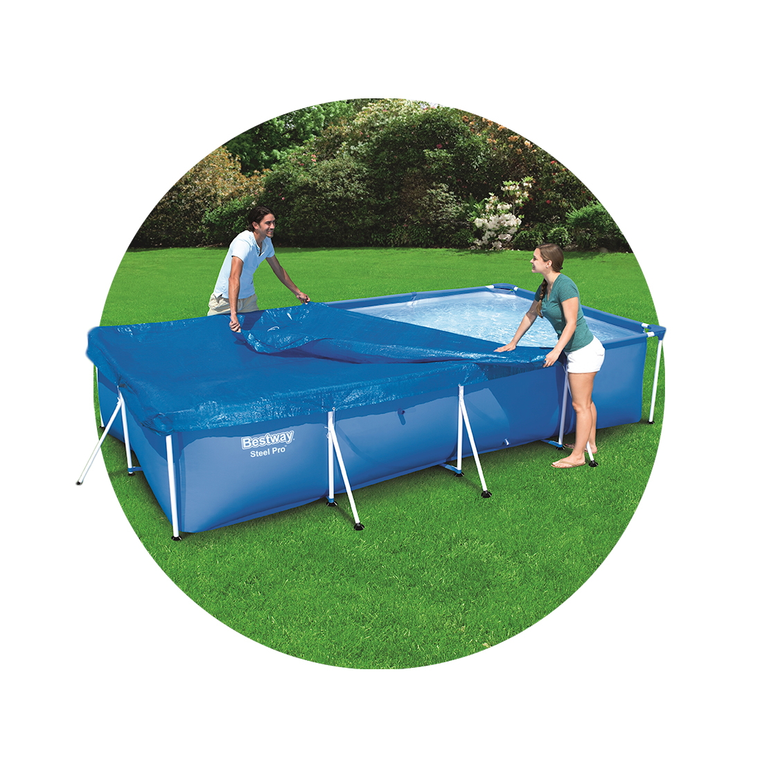 Тент для каркасных бассейнов размером 400 х 211 см, BESTWAY, 58107, Тарпаулин, Синий, Цветная коробк |
