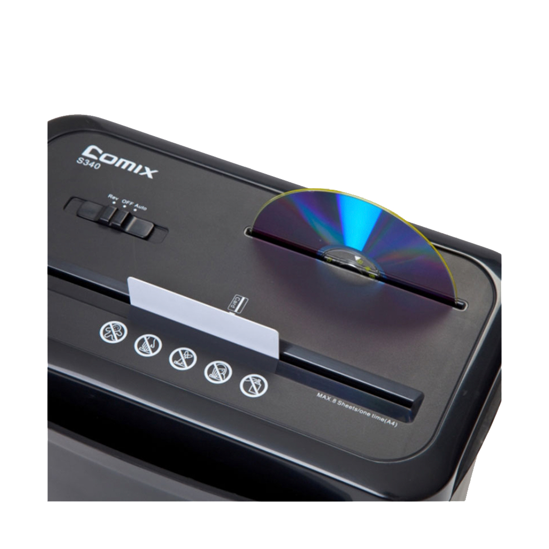 Уничтожитель бумаг, COMIX, S340, A4, Подача: 8 лист., Уничтожение CD/кредитных карт, Уровень секретн |